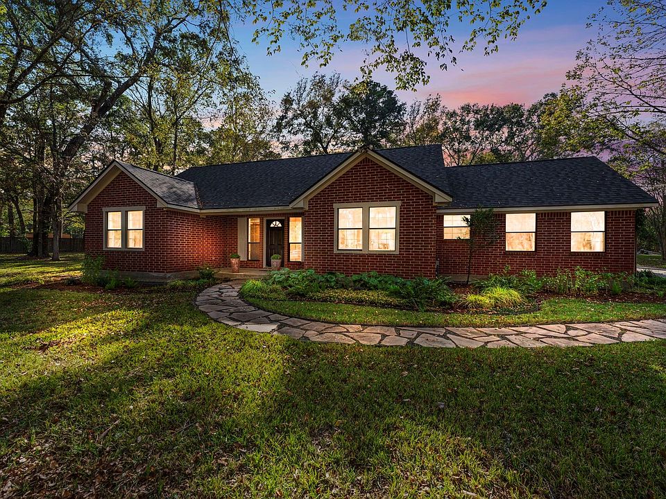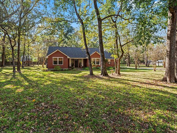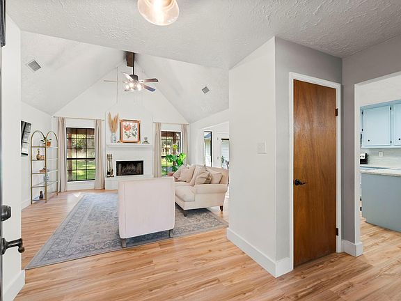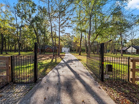 Experience peaceful country living on this gated 2.62-acre lease property with a spacious home and full guest apartment. Inside, you'll find beautiful updated flooring, abundant natural light, and an open layout centered around a bright living room with vaulted ceilings and a painted-brick fireplace. The kitchen offers a large island, stainless-steel appliances, and warm two-tone cabinetry. The home includes 4 full bathrooms and an additional flex room that can serve as a 5th bedroom, office, or playroom. A covered back patio overlooks the wooded acreage perfect for relaxing or entertaining. The detached oversized garage provides ample storage and includes an 832-sq-ft guest suite complete with its own kitchen, living area, bedroom, and bath. With plenty of space, privacy, and functional living options, this property is ideal for anyone seeking comfort and room to spread out while staying minutes from town.