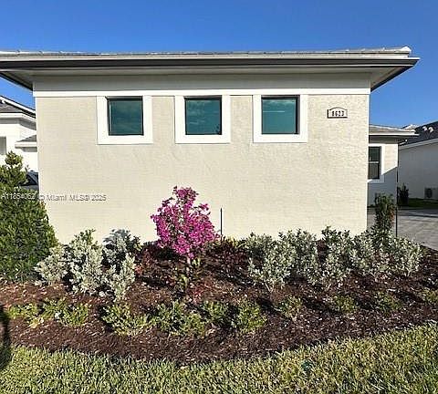 Brand New home built 2025 ! Never LIved in! Great lot with garden and lake views. 4 bedrooms and 3 full bathrooms. Crown MOulding through common araes, Hi hats in Living room, kitchen and Owner bedroom, fans and lights installed on ceilings, cabinets in pantry room and laundry, laundry tb, summer kitchewn ready, window blinds, tile to the rook in shower and bathtub, mirros to the roof on 2 bathrooms, outside camera connection, flood light plus other upgrades, must see.Under Builders Warranty.