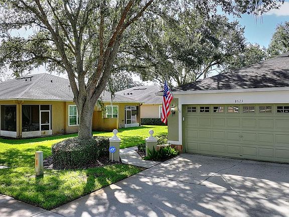 Gated Community! Beautiful home, make an appointment today! Maintenance Free Living! Some of the pictures have been virtually staged. Make this home yours today! In West Meadows, this villa, with 2-bedroom 2 bath with possible 3rd bedroom/office, is appointed with new floors, new blinds/sliders, rollers with remote control in two bedrooms, new enclosed patio, updated landscape, new light fixtures, new fans, all new stainless steel appliances (to include range, microwave, refrigerator and stove), new garage motor with 5 years guarantee since 2024, new garage opener, installed ring doorbell, motion sensors and three additional outdoor cameras, and more. The 3rd bedroom/office has been enclosed with French Doors that makes this space completely versatile for many uses, plus a full wall closet added for additional storage. Attic has been updated to accommodate additional storage area, plus a comfortable ladder has been installed. The kitchen features white cabinetry, NEW stainless steel appliances, ample counter space, closet pantry, breakfast bar, laminate flooring and sunny breakfast nook. Relax at the end of a busy day in an oversized master retreat that offers tray ceiling as well as a spacious walk in closet. The ensuite master bathroom provides dual vanities, a spacious walk-in closet, and a generously sized walk-in shower. To provide the utmost privacy, the secondary bedrooms are located on the opposite side of the home. The den (which can also be used as a 3rd bedroom) features an elegant French door entry and an ample closet. Bring the outside in! The sliding glass doors in the great room opens to a screened lanai with beautiful water and conservation views. Yes you can have it all! Maintenance includes exterior painting, roof, lawn service, community pool and gated entrance. West Meadows has a fabulous community center with a 2 story water slide, 2 pools, fitness center, tennis, basketball courts, playground and meeting room. Just minutes to I-75, shopping, hospitals and restaurants. Welcome Home! Room Feature: Linen Closet In Bath (Primary Bedroom) and also off second bathroom. Monthly maintenance fee also includes grounds maintenance, private roads, escrow reserves. Doves Landing has its own community pool and residents have access to the West Meadows community amenities including resort and lap pools, fitness center, tennis, parks, playgrounds, walking trails and clubhouse. Easy access to I-75/275, USF, VA Hospitals, Moffitt Cancer Center, Premium Outlet Malls and Shops at Wiregrass Interior. There is so much about this home to LOVE. Residents of Doves Landing have their own private community pool, plus access to West Meadows resort-style amenities that include a clubhouse, gym with fitness room, multi-purpose room, a heated lap pool, pool with huge water slide, and a splash pad for tots. For the sports enthusiast, there are baseball and soccer fields, volleyball and basketball courts, and 4 lighted tennis courts. Your fur-babies can socialize in the large and small dog parks. Walking and jogging trails around two major ponds have benches along the way to sit and enjoy the scenery and water fountains. Easy access to major highways I-75, I-275, shopping, hospitals, medical facilities, dining, entertainment, and all the Bay Area sports venues HOA replaced Roof in 2014 and Painted the exterior in 2020