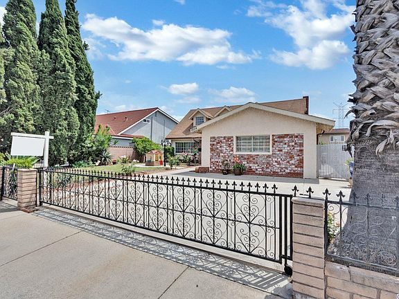Premier Pico Rivera Debut! This picturesque Pool Home with a secured entry offers 5 bedrooms and 3 bathrooms, completely remodeled within the last year! Overlooking the pool, you have a bright and spacious living room with a fireplace and French doors with easy patio access. The stunning upgraded kitchen presents elegant modern touches that include high end cabinetry, with immaculate counter-tops, decorative back-splash, top of the line built-in appliances, as well as a cozy dining area nestled in the corner of the room. Bathrooms are beautifully designed, while the bedrooms are well-illuminated with ample closet space. Features in the home include impressive flooring decorated with baseboard moldings, high ceilings equipped with recessed lighting, a new Central A/C unit, a tankless water heater, new pipes and a new electrical. Outside find a welcoming yard with a pool, spa and a large covered patio, perfect for outdoor seating. There is tons of privacy, a lemon tree and fresh colorful flowers that you can enjoy.