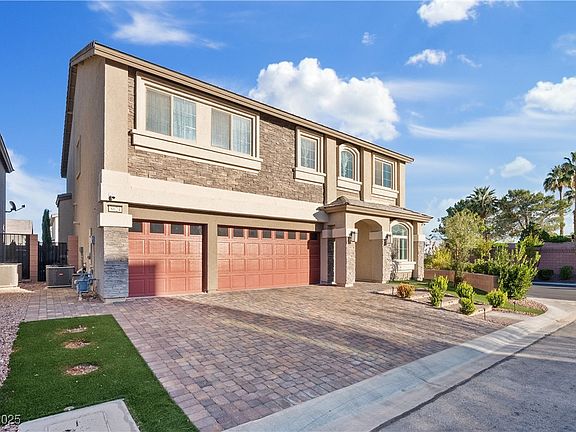 Welcome to your modern Southwest Las Vegas retreat, where style, comfort, and thoughtful design come together seamlessly. This 5-bedroom home features an open floor plan that flows effortlessly to a beautiful backyard with a custom heated pool, mini basketball court and BBQ stub hook-up—perfect for entertaining or relaxing. Inside, you’ll find quartz countertops, upgraded cabinetry, pre-wiring for security system, energy-efficient solar panels, and epoxy garage flooring. The primary en suite bath offers double sinks, soaking tub, walk-in shower with frosted privacy band, and a sizable walk-in closet. The two junior suites—one downstairs and the other upstairs—are ideal for large or multi-generational families, offering comfort and privacy for everyone. Perfectly situated near dining, shopping, entertainment, and easy freeway access, this home offers modern living with an inviting touch—a definite must-see!