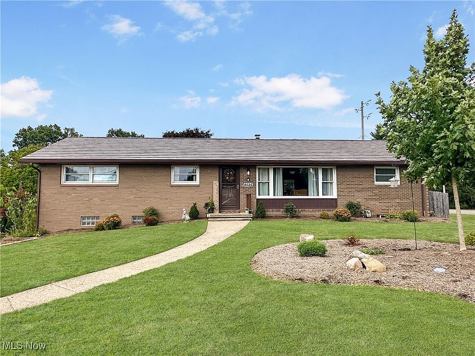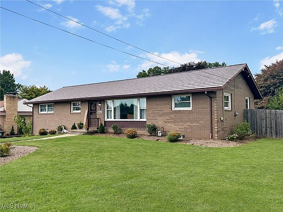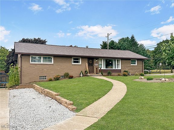 Cozy all brick raised-ranch in prime Jackson Twp. location. Home sits on a corner lot and features four bedrooms and 2 full baths. You'll enjoy the privacy that this split floor plan provides with the primary bed and bath separated from the other 3 bedrooms on the main level. The living room has a large picture window for plenty of natural light. The galley kitchen includes all appliances and has a lovely window with shelving over the sink. The dining room has sliding doors leading out to a 3-season sunroom with glass on all sides for plenty of sunshine! The sunroom overlooks your fully fenced backyard with a garden. The large walkout basement has plenty of room for storage, or could be finished as additional living space! Storage shed will stay. Furnace 2016.Newer vinyl windows and metal roof. Schedule your showing today!