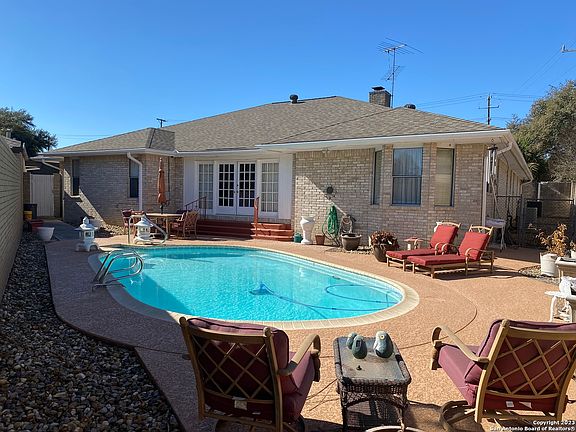 An unbelievably charming and meticulously cared for home with a private pool, on a quiet cul-de-sac by a relaxing pond with ducks, is now available in beautiful City of Windcrest. You will love the large living space of this 3,025 sqft, single story home has to offer. The fully updated kitchen has beautiful granite counters, double ovens, gas stove and stainless steel appliances, an open cathedral ceiling rises above the family room with a large wood burning fireplace. The sunroom opens to the beautiful private backyard and pool. All bedrooms are very large, carpeted and very accommodating with its own bathrooms attached. Beautiful Saltillo Tiles line the floors throughout the kitchen, entry, laundry room, family room and sunroom. Location is also very coveted, just minutes from Loop 410, Randolph AFB, Fort Sam Houston, shopping schools, restaurants and more. Come visit and experience this property for yourself.