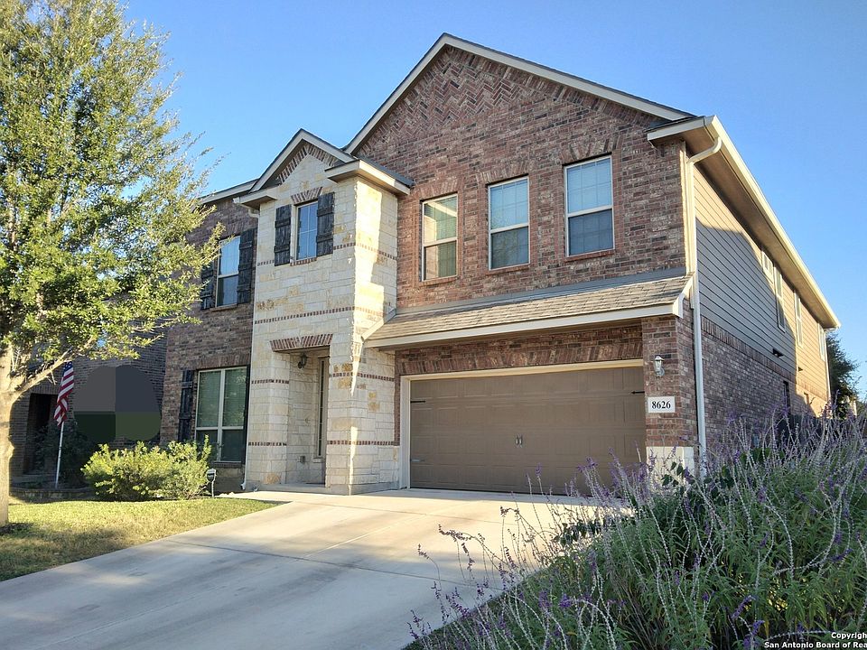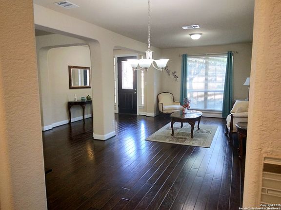 NEW ROOF installed May 2025! This SPACIOUS 2-story stunner (5 bed 4 full baths) features beautiful wood flooring, open/flowing floor plan, and expansive kitchen with walk-in pantry, butler pantry, recessed lighting, plentiful cabinet space, modern backsplash, and granite countertops/island. Lots of closet storage throughout the home with an upsized utility room. Upstairs you will behold large bedrooms with walk-in closets, along with a massive game room & media/flex areas for entertainment. A programmable sprinkler system keeps your entire lawn and trees growing. Modern amenities include a foam-sprayed attic, wooden window blinds, and stylized metal balusters on the stairway. New HVAC fan motor/blades installed March 2025 to keep the AC optimized. This hidden gem of a home is located close to Lackland, medical centers, restaurants/shopping, Sea World, Loop 410, and Hwy 151 to commute downtown expeditiously (and avoid the traffic jams on Hwy 151 to Alamo Ranch).
