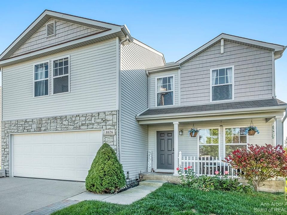 Beautiful 3 bedroom, 2.5 bath colonial in highly desirable Thornton Farms! Enter from the large front porch into this spacious home featuring a flex room. The kitchen opens to the family room with beautiful vinyl plank flooring. Kitchen features a new microwave, dishwasher and sink. Large eat-in kitchen area with slider to access the new paver patio and the fully fenced in yard. Step upstairs to a large master bedroom with walk-in closet, and private full bath. Also features 2 large sized bedrooms with ample closet space. A bonus loft area and upstairs laundry room make this home easy living. The laundry room features new front load GE washer and dryer. Home also features a Nest Thermostat, new window screens, new ceiling fans in the bedrooms and new rustic lighting in many of the living areas. Two car garage with extended driveway. Full basement with egress window and pre-plumbed for a bathroom waiting for your finishing touches. Dexter Schools. Enjoy all that Thornton Farms has to offer including a clubhouse, community pool and playground. Perfect place to call home!