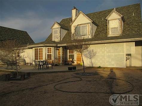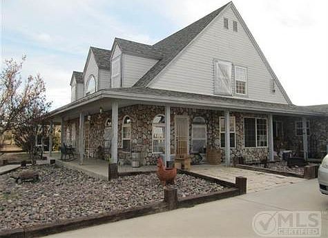 2 story South side home with a great view of the desert and mountains. This 5 bedroom, 4 bath(profile shows 4 bedrooms 3.5 bath) home features Corian kitchen counter tops, electric stove and upgraded carpet 2 yrs old. Wood beam ceiling in the living room. Master bedroom downstairs along with a bedroom (used as a office) with a bathroom. Nice size kitchen with a kitchen nook,tile flooring. Separate laundry room with ample storage and a nice size pantry. 3 more bedrooms upstairs with 2 bathrooms . A small room used as a small toy room for the grandchildren. The family room is upstairs. 4 bedroom has alcoves and 3 of them have their own bathrooms. The grounds are fenced and cross fenced, 2 large wood sheds, shed for animals and a metal shed container to stay. Covered back patio, covered porch in front and sides of home. Brokered And Advertised By: ERA J Tidwell & Associates R E Listing Agent: Frances Conkle