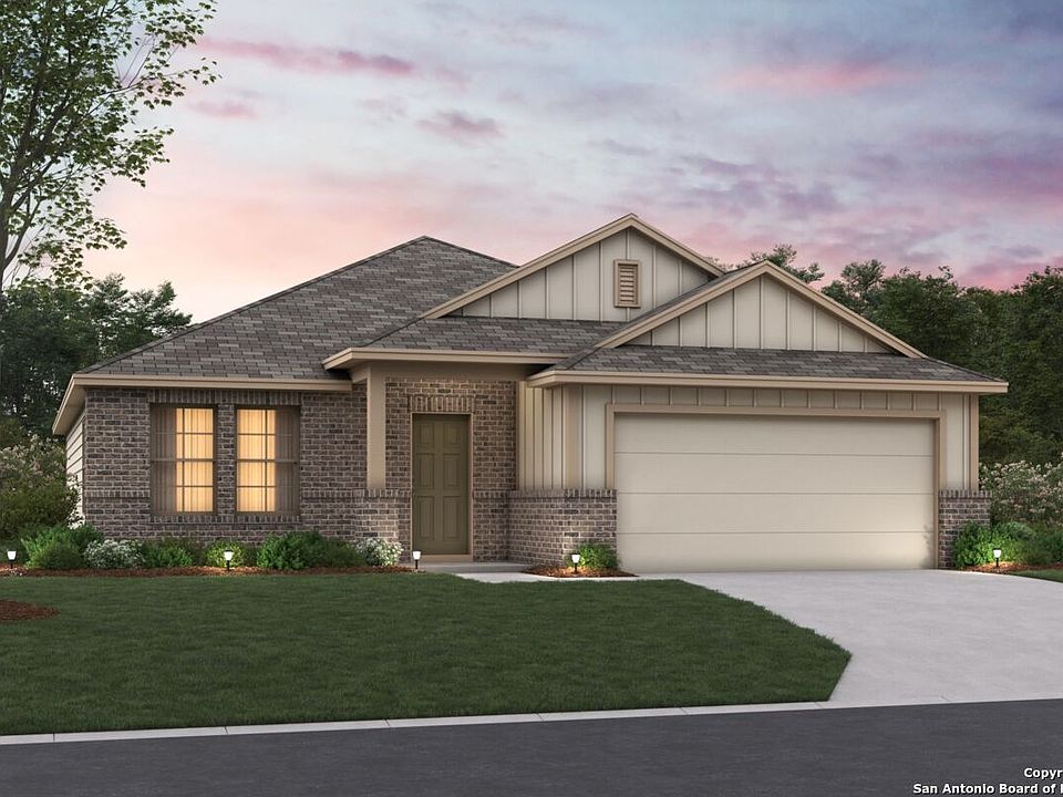 ***ESTIMATED COMPLETION DATE JANUAR 2026*** Welcome to the Desoto floorplan. Searching for the best in both function and form? Look no further than this single-story, Smart Series design. This floorplan features 3 bedrooms, 2 bathrooms, a 2-car garage, and 1,697 square feet of functional living space. As you enter the spacious foyer, immediately experience the open-concept layout. Adjoined to the entry is a bright and spacious flex room. Here you may select to convert the flex space into an optional study with double door entry to fit your family's unique needs. The foyer flows into the open-concept family room, kitchen, and dining area. Enjoy impressive included features throughout the kitchen, such as granite countertops, a spacious kitchen island, and upper and lower cabinets. Choose deluxe upgrade options in the kitchen to give this space your personal finishing touch. Tucked in a private hallway off of the dining room are two secondary bedrooms mirroring each other across a shared full bathroom. Enter your beautiful owner's suite through a private entry off of the family room, boasting an optional extended bay window for extra space and plenty of natural light. Through optional double doors, enter the owner's bath retreat, complete with a walk-in closet, double vanities, and a large walk-in shower with the option to be converted to separate garden-style tub and walk-in shower. Want to enjoy a Texas sunset right outside of your back door? Head out to your sizable back patio with easy access from the family room. Add some shade by converting this space to a covered patio, a fantastic option the Desoto floorplan offers.