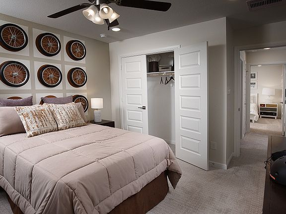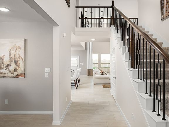 Your Richmond dream home should match the life you and your loved ones lead, from surrounding neighborhood down to the number of rooms. This level of comfort and customization is just what life in a home in Grand Vistas has to offer you. Our community's Scarlet homes offer all the space and features your family needs, with two floors of rooms built around the needs of you and your loved ones. If you're looking to experience life near Texas' largest city, do so from the comfort of a home built for you. Discover the Scarlet Pull your car into the two-car garage, or step outside and walk in through the front porch. The porch entryway immediately leads into the foyer, where you can head upstairs to relax or step into the dining room for a delicious, well-earned meal. The garage, meanwhile, leads conveniently into the laundry room. Families with multiple cars or in need of additional storage can build a home with a three-car garage, or more space to keep everything nice and tidy. Upstairs, you'll find three of the home's bedrooms - with two of its bathrooms - as well as a game room. As much fun as pool or foosball with your friends can be, a change of pace every once in awhile can be nice. For that, consider the media room add-on. It makes for great movie nights! Easy Living & Entertaining Back downstairs, head out from the hallway to the living area.