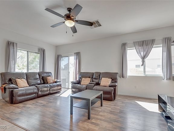 Welcome to this stunning 3-bedroom, 2.5-bathroom townhouse in the sought-after Arlington Ranch, a gated community in Mountains Edge. Boasting 1,553 square feet of living space, this home features stylish wood plank laminate flooring throughout and an inviting, open layout.