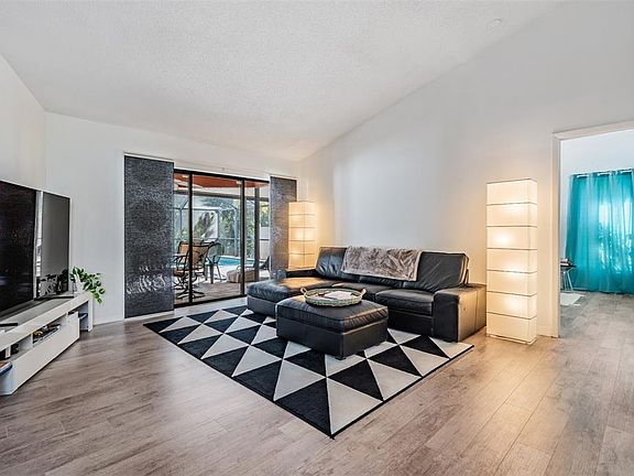 Guest bedroomsTropical palm viewsSparkling saltwater pool lanaiLush greeneryHigh ceilingsSplit open floor planSerene outdoor oasis