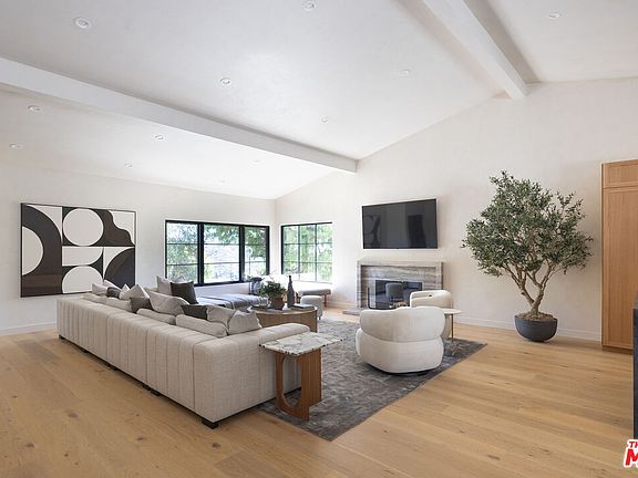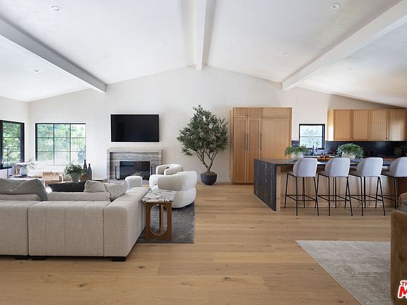 Perched in the prestigious Laurel Hills neighborhood of the Hollywood Hills, this exquisitely reimagined modern residence offers a rare blend of refined elegance and serene canyon living. This home is a curated expression of luxury living designed for discerning buyers who value privacy, style, and elevated comfort. A voluminous open-concept layout with soaring vaulted ceilings invites seamless flow between living, dining, and entertaining spaces. Every detail has been thoughtfully considered: from hand-applied Portola lime wash walls and custom built-ins to natural stone finishes and wide-plank European white oak flooring that runs throughout. Expansive picture windows flood the interiors with natural light, creating a serene indoor-outdoor connection. The home offers three generously appointed bedrooms and three spa-quality bathrooms, each crafted with a quiet elegance and bespoke materials. The primary suite is a true retreat, offering both intimacy and sophistication. Outside, the property is enveloped by mature olive trees and curated landscaping, creating a private, resort-like setting. The flat grassy yard and stunning pool provide an ideal backdrop for both quiet relaxation and stylish entertaining. The sleek smooth stucco exterior, brass detailing, and neutral color palette underscore the home's clean lines and contemporary sensibility. State-of-the-art amenities include Control4 Home Automation, Lutron lighting, and a two-car garage with EV charging. This is more than a home, it's a statement of taste and lifestyle. Tucked away in one of Los Angeles' most exclusive enclaves, this private oasis offers a rare opportunity to own a truly turnkey residence that embodies modern luxury and timeless charm.