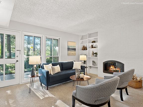 Quiet, gated community with a super cool SWIMMING POOL, recreation & weight room. Lovely, quiet unit backs to golf course and has a large patio and beautiful, mature trees. Unit with big windows for lots of natural light, built in bookcases, wood burning FP and cute dining area. Bathroom and kitchen are tastefully renovated. Fresh interior paint and neutral floor coverings. Guest parking and two storage areas are a bonus.