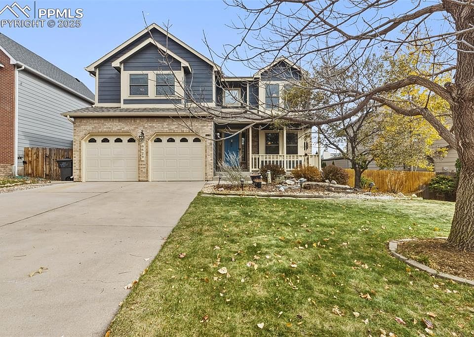 Located in the highly sought-after D-20 Gatehouse Village, this beautifully updated 5-bedroom, 4-bath home offers approximately 3,200 total square feet of living space! The spacious kitchen is a true highlight, featuring granite countertops, stainless steel appliances, a breakfast bar, and a large center island, perfect for gatherings and entertaining. Additional features include vinyl windows, central A/C, and breathtaking mountain and Pikes Peak views from multiple rooms. The inviting floor plan offers a large upper level loft, a cozy family room with fireplace, and generously sized bedrooms throughout. The fully finished basement provides excellent additional living space, ideal for guests, hobbies, or recreation. Step outside to a beautifully landscaped backyard complete with turf, mature trees and a concrete/paver stone patio, perfect for relaxing or entertaining. An oversized 2-car garage offers ample parking and storage space. Conveniently located near top-rated schools, parks, and shopping, this home truly has it all. Come take a look before it's too late!