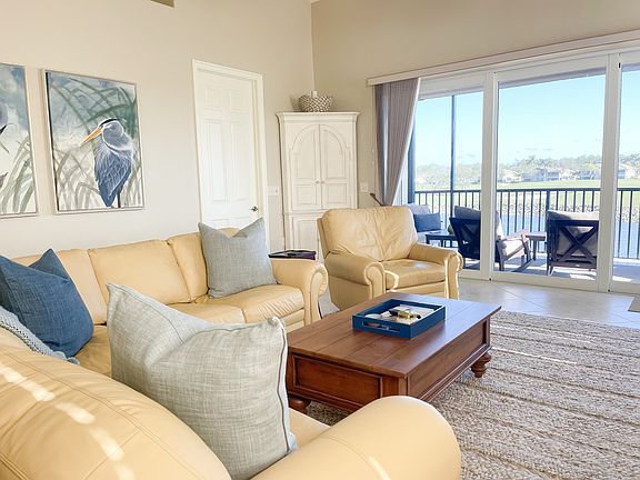 This spacious residence, perched on the second floor in the double gated community of Champions in Mustang Island at Lely Resort, is tastefully decorated and loaded with updates. It features a private in-unit elevator, three full bathrooms, and three bedrooms, including a bunk room that offers bunk beds with a trundle bed and queen sleeper sofa -- so there is plenty of versatility and privacy to accommodate guests. All bedrooms have spacious walk-in closets. The well-equipped and updated gourmet kitchen is in the heart of the home. It features stunning granite countertops, GE stainless steel appliances, eat-in dining area, counter seating, with an adjacent formal dining room.