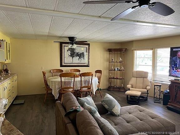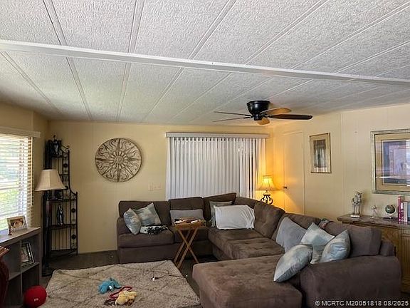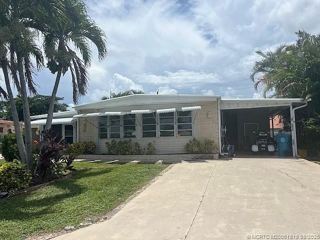 Just Listed !! Spacious open floor plan with large bedrooms. Attached Florida room, plus an attached carport and Extra Large storage room. Large green space behind the home. Located in Sea Meadows an active 55+ community. 2nd person can be 40 years old.