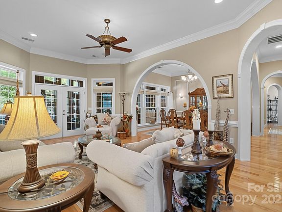 Stunning custom full-brick home on 1.3 acres, offering exceptional craftsmanship and thoughtful updates throughout. This one-story beauty features a spacious bonus room over the garage complete with full bath and closet—perfect for guests or a private suite. The massive primary retreat includes dual walk-in closets, a sitting area, and a beautifully updated bath with tiled shower featuring three shower heads, a jetted tub, and new quartz countertops. Enjoy a split-bedroom floor plan, crown molding throughout, and real hardwood floors. The gourmet kitchen boasts granite countertops, new Bosch dishwasher and oven (2024), and a custom range hood, with both a formal dining room and an eat-in breakfast area. Additional highlights include a butler’s pantry, separate dry bar, custom built-ins in the family room, and a spacious study/office. Recent updates include fresh interior paint (2024), new carpet (2024), encapsulated crawlspace (2024), updated landscaping, and repainted deck and sunroom. The 3-car attached garage provides ample parking and storage, while the oversized detached garage offers endless possibilities—including potential secondary living quarters—though it is not currently wired for electric or plumbing. Relax in the Wellis 7-person hot tub with built-in Bluetooth and LED lighting. Refrigerator, washer, dryer, and hot tub convey. A rare find combining luxury, functionality, and comfort!