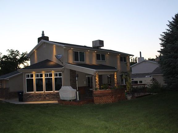 Exterior remodeled 2016. Entire home was wrapped in insulation prior to brownstone and stucco installation. Stucco and the designer rock wraps completely around the entire house. New low E windows with factory tint. The upstairs bathroom windows have been increased in size to update the homes exterior. New sofet and gutters. This entire house inside and out features amazing custom lighting on dimmers. The lighting in sofets highlight the windows, walkways and the seven gorgeous rock pillars around the house. Also has four beautiful carriage lights, one on the front porch and the others on the front of the three car garage. All lighting on the exterior of the house have dusk to dawn sensors for convenience and security. The lights in the sofets as well as carriage lighting can be turner off at anytime. In the eves on both levels of the house are outlets for custom lighting during the holidays. A new 24'X15' roof covers half of the redwood deck, this area has two fans and separate lighting for evening entertaining. In addition to the three wide concrete driveway a custom double wide concrete drive has been layed out in a brick pattern with 4" wide grass strip in between the 4'X 8' concrete slabs. This additional drive area has an underground water system to keep water in the grass...not on the cars. Two new high efficiency furnace and central air systems installed May 2019, new water heater installed 2014. Insulation was blown into attic 2012 and two new attic fans were installed with sensors for automatic air circulation 2016. New roof 2009 and heat tape installed on roof to prevent ice dams. New white vinyl fence 2017.