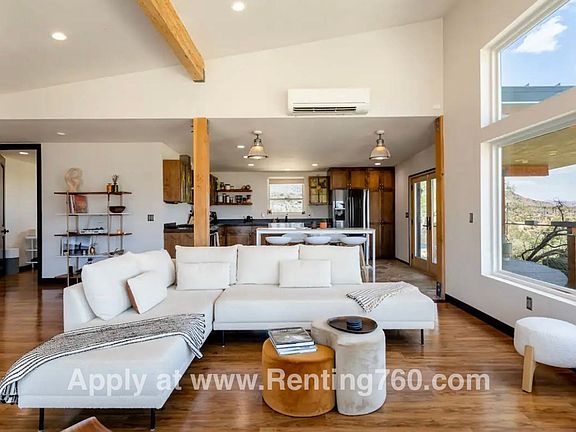Welcome to this unique home located moments away from the Joshua Tree National Park entrance! The main home boasts two spacious bedrooms and one fully updated bathroom. The casita has a full bathroom, walk-in closet, kitchen, and access to the garage/movie area. The main house has a modern kitchen and is equipped with stainless steel appliances and the private laundry adds to the convenience. The home is situated near downtown, providing easy access to local amenities. The property also features incredible desert views, a three-car garage, and is furnished to a high standard. The home is pet-friendly, welcoming small dogs. The property is also eco-friendly, equipped with solar panels. One of the standout features of this home is the incredible views it offers, which can be enjoyed from the comfort of a Jacuzzi spa. The home's proximity to Joshua Tree National Park adds to its appeal, making it an ideal choice for those who appreciate nature and outdoor activities. Southern Cal Property Management lic:02203102
