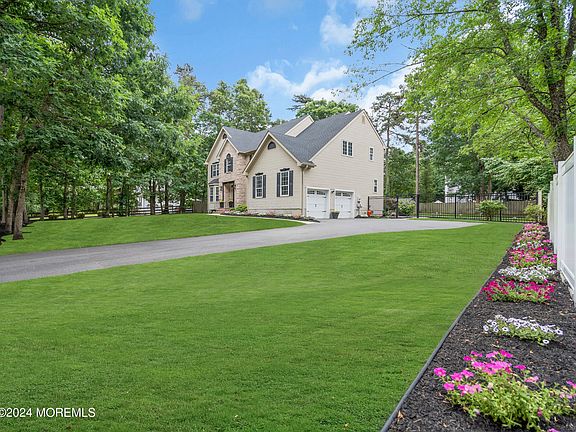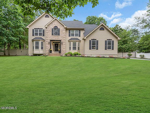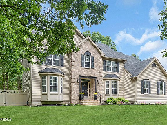 Welcome to 863 Anderson Rd, a beautifully maintained 5 Bedroom, 2 ½ Bath Center Hall Colonial boasting over 3,200 sf of both elegance and comfort. Upon entry into the two-story foyer, you will immediately feel warmly welcomed into this impressive residence. The heart of this home is its large eat-in kitchen, showcasing a center island, 42-inch cherry cabinets, stainless steel appliances and pantry, all overlooking the spectacular two-story great room with gas fireplace. The main level also features a spacious formal dining room and living room with bay windows, updated powder room and a bedroom offering versatility as a guest suite or home office. Upstairs, experience the luxurious primary suite with double door entry, vaulted ceiling, and dual walk-in closets, and a full ensuite bath complete with a soaking tub, shower, and dual sink vanity. Three additional generously sized bedrooms, ample closets, and full updated bath complete the second level. The interior is complemented by the full finished basement where you will find an abundance of extra living space and storage. Just outside, an expansive patio with firepit overlooks a private fully fenced rear yard perfect for an evening of relaxation or entertaining friends. This home has it all...additional features include decorative crown molding throughout, hardwood floors on the main level, a 2-car, direct entry garage, new roof, and underground sprinklers. The property's prime location offers easy access to major highways, shopping centers, entertainment venues and the Jersey Shore. Don't miss the opportunity to own this exceptional property!