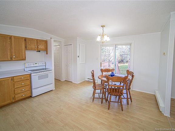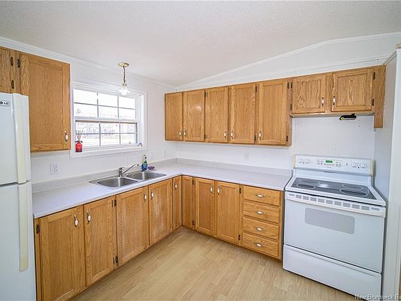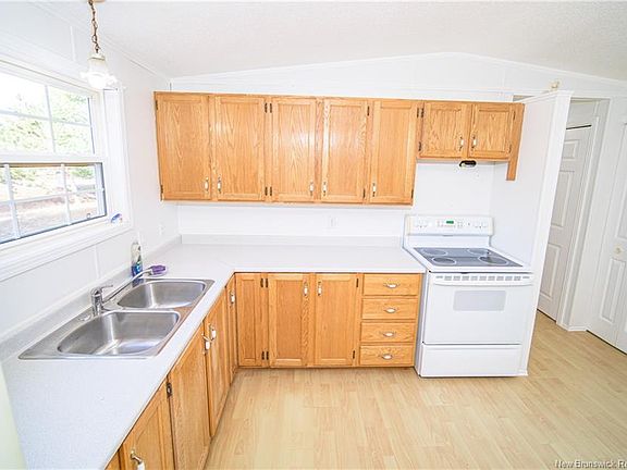 Bright & Spacious Mini Home on a Private Acre Lot . Tired of renting? Here’s your opportunity to own your own home! Nestled on beautiful, treed one-acre lot, this bright and spacious mini home offers the perfect blend of comfort and privacy. Step inside to welcoming open-concept layout featuring large living room and spacious eat-in kitchen complete with fridge and stove. Patio doors off the dining area lead to the backyard - ideal for summer BBQs or quiet morning coffee surrounded by nature. Primary bedroom, main bath with skylight, and convenient laundry area are located at one end of the home, providing peaceful retreat. Second bedroom is set at the opposite end, offering extra privacy—perfect for guests, a child’s room, or a home office. Roof shingles replaced in July 2018. Just minutes from Oromocto and all amenities, this property combines country living with convenience.