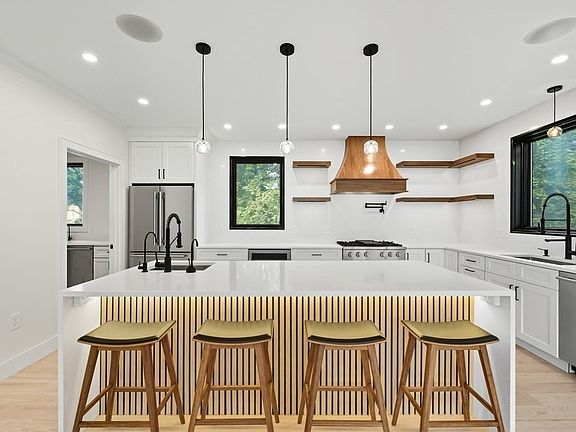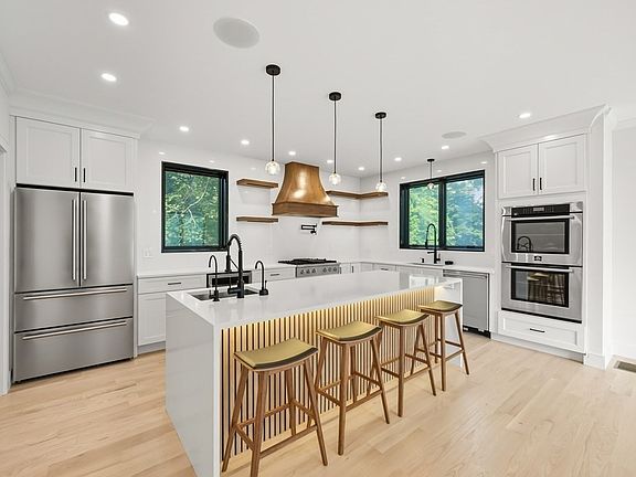 Reading's newest 2025 build delivers approx. 3,250 sq ft at 863 Main St. Four generous bedrooms and four spa-like full baths—each equally stunning with tasteful, unique aesthetics—feature Italian stone and tile. Sunlit open living/dining flows to a large deck, patio and yard—perfect for entertaining. Chef's kitchen: high-end Forno Alta Qualita appliances, two dishwashers, Pella windows, designer lighting, and a full-size walk-in pantry. Three full-size refrigerators: two serving the kitchen (including one in the pantry) and a third in the lower-level suite. Flexible lower level offers an au pair/in-law suite with living area, full bath and its own laundry—ideal for guests or multi-gen living. Primary laundry on the 2nd floor. Whole-house speakers, quality construction, fenced yard, and ample storage. High-efficiency Lochinvar boiler. Prime location near downtown, commuter rail, bus routes, schools, shops, restaurants, bars and trails. Custom build quality that stands out from the rest!