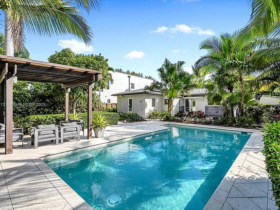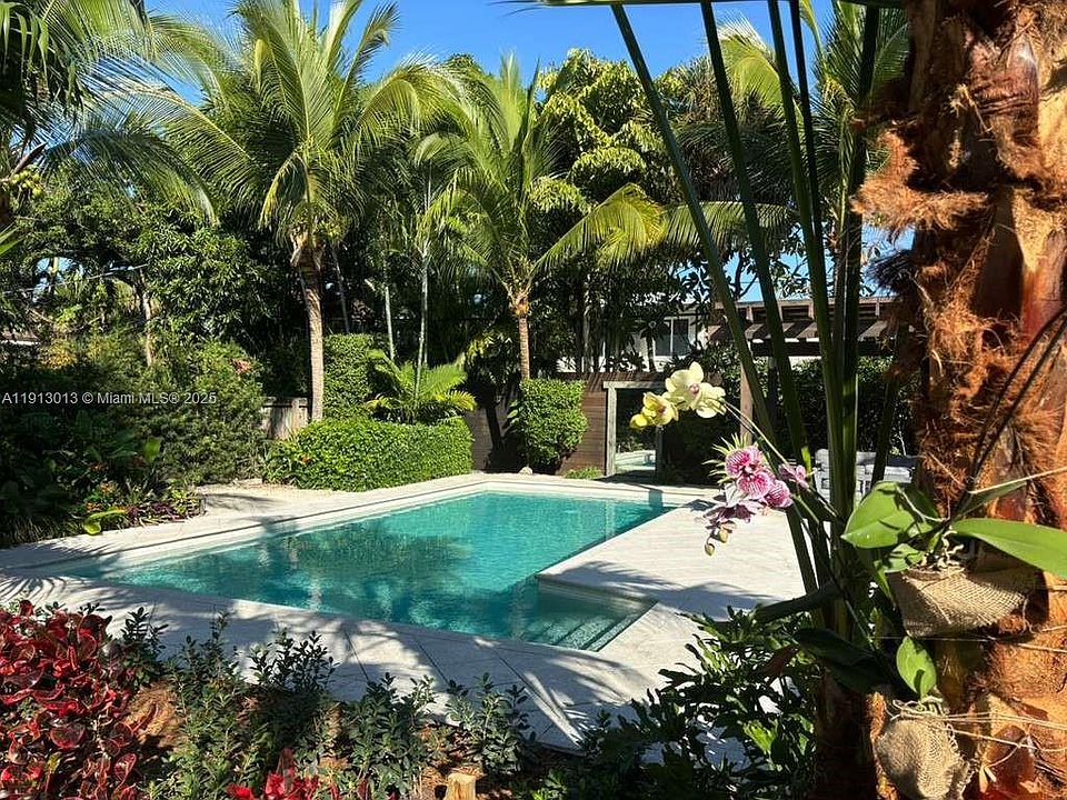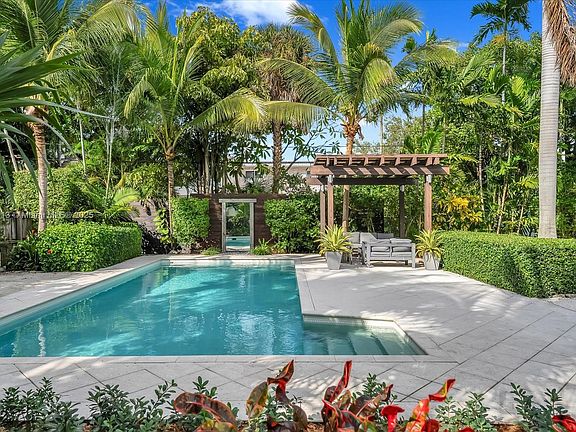 Step inside this paradisiac and lush tropical oasis, featuring 3 spacious bedrooms and 2 bathrooms bathed in natural light, with open and modern, recently upgraded living spaces and kitchen. Outside, enjoy an oversized sparkling pool, an expansive deck and outdoors showing, perfect for entertaining or relaxing to the gentle songs of birds and nature. The spacious front and back yards, surrounded by mature tropical landscaping, create a private retreat on a 9,750 SF lot that offers a true indoor-outdoor lifestyle. Ideally located just an 8-minute walk to the bay, 2 minutes to Military Trail Park (with dog park), 1 mile from Miami Shores Country Club, and minutes from Publix, Walgreens, TD Bank, and more this home beautifully combines convenience, natural beauty, and tranquility.