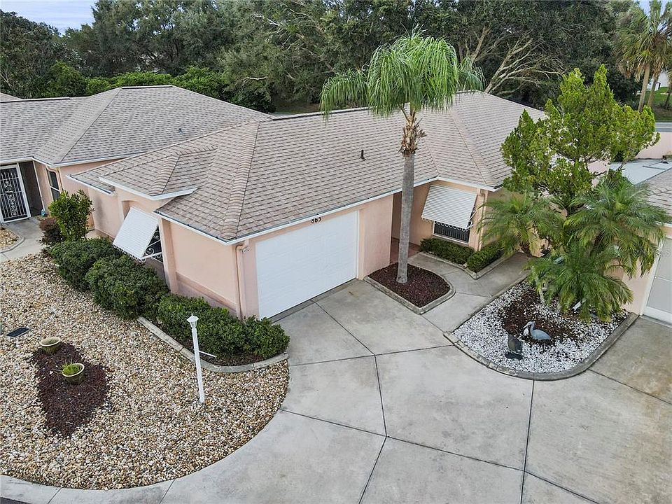No Bond, New roof 2021, New stainless appliances and Turnkey. 2 Bedroom 2 Bath stucco with courtyard backyard. Ceramic Tile Plank flooring, granite kitchen countertop, freshly painted cabinets, ceiling fan lights throughout, and enclosed lanai. So very close to Spanish Springs Town Square and everything imaginable on US 441/27, not to mention all the amenities being a Villager has to offer. Village of San Miguel. Own it and live here or investor opportunity knocking. Call today for a private tour or Facetime showing.