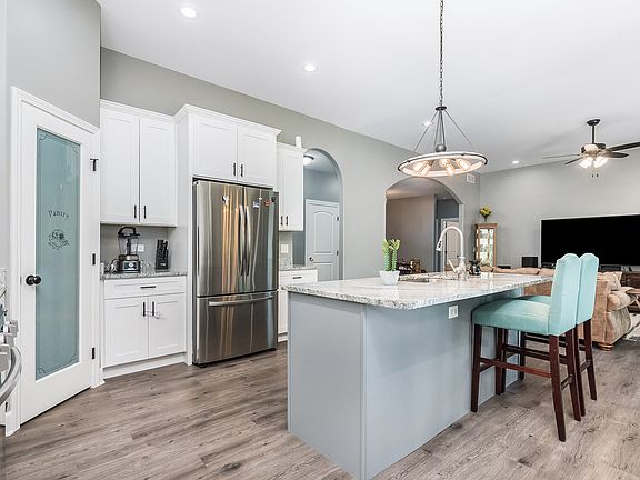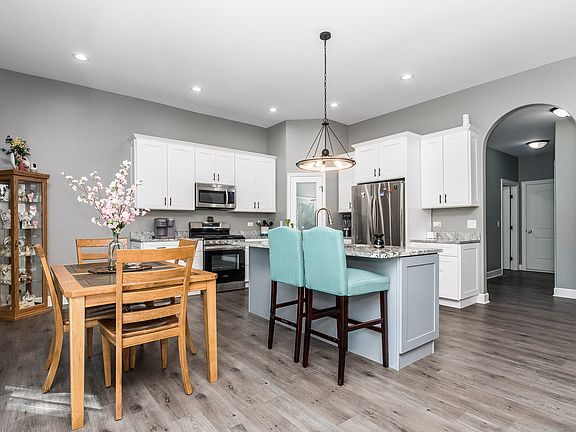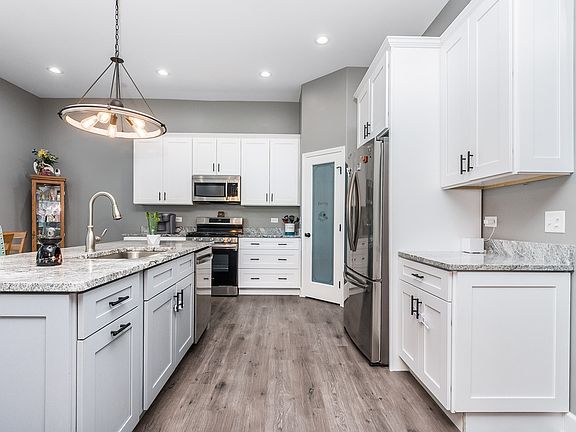 Beautiful, like-new construction 3 bedroom Ranch home with an open concept floor plan, 3 car attached garage, full basement and stunning, top-quality finishes throughout! Eat-in kitchen features 42" shaker cabinets, 7' working island with breakfast bar, corner pantry, sleek granite countertops, and a Samsung appliance suite! Large primary bedroom features a walk-in-closet and en-suite bathroom with a double bowl vanity, walk-in shower, soaker tub, and custom tile surrounds. Spacious Family Room features a gas start fireplace and access to the expansive 22' x 12' wooden deck. Additional highlights include: a convenient main floor laundry room, 9' high ceilings on the main level, luxury vinyl plank flooring throughout, recessed lighting throughout, ample storage throughout, upgraded mill-work and doors, unfinished basement ready to be finished (plumbing roughed in), quality Marvin windows and an energy-efficient heating and cooling system to save on utility bills! This gem will not last long! Call to schedule a home tour today!