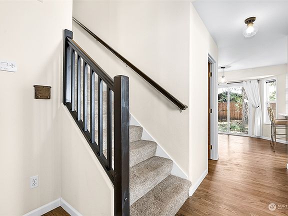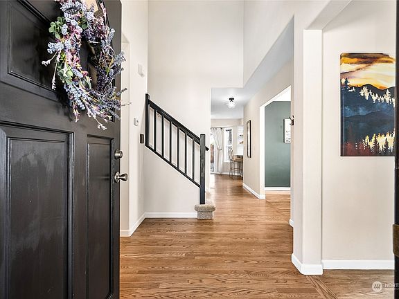 Nestled in the coveted Christa Heights Neighborhood, this beautiful home offers an inviting atmosphere from the moment you step onto it! This spacious 1,858 sq ft residence boasting 3 bedrooms, 2.5 baths, and tiger hardwood floors that add warmth and character throughout. The modern kitchen is equipped with white shaker cabinets, quartz countertops, S/S appliances, under mounted sink, and sleek subway backsplash. Upstairs, the spacious owner's suite awaits with a walk-in closet and ensuite bath featuring a shower and soaking tub. Two additional bedrooms and another full bath provide ample space. Fully fenced yard with dog run, mature landscaping, neighborhood garden, mins to parks, trails, amenities, I-5, JBLM.