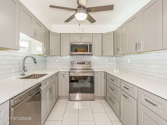 Welcome to this stunning 1 bedroom, 1 bathroom condo that has been completely renovated from top to bottom. This smart home features state-of-the-art technology including smart window shades, smart lighting, and a smart thermostat for ultimate convenience. Step inside to find a bright and airy living space with a cozy fireplace, perfect for relaxing on chilly evenings. The upgraded kitchen boasts all new cabinets, quartz countertops, and stainless steel appliances, making meal prep a breeze. The primary bedroom features a walk-in closet, providing ample storage space. The bathroom has also been completely upgraded with modern colors and materials. This condo also offers central air and heat for year-round comfort, upgraded windows and sliding glass door, as well as a balcony that is perfect for enjoying your morning coffee or a glass of wine in the evenings. The balcony is shaded in the summer, making it an ideal spot to unwind after a long day. In addition, this property includes convenient amenities such as coin laundry, an elevator, and assigned parking space. Located less than 1/2 mile from the train station!