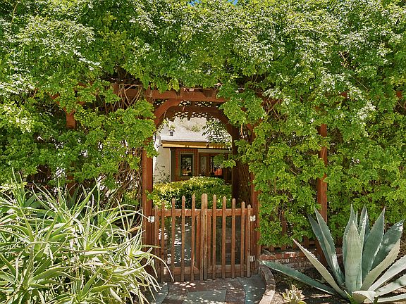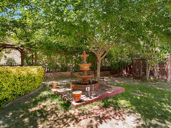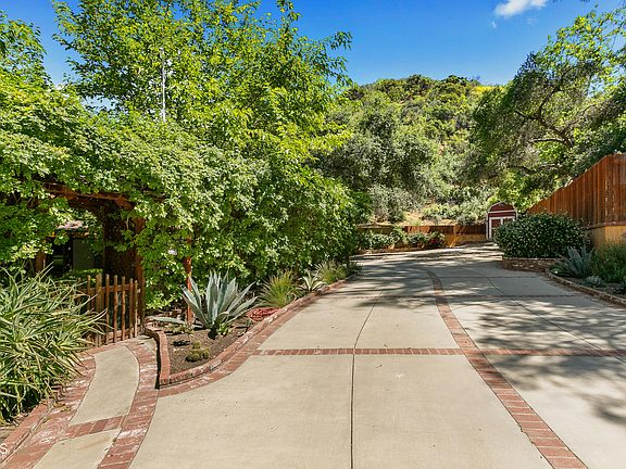 Nestled above La Tuna Canyon Road, up the private drive called Wildwood Fire Rd, surrounded by an abundance of natural beauty, this exquisite hacienda style home immediately transports one to another world with lush gardens, trickling fountains, rich tile and stonework, and hand carved cabinetry throughout. Welcomed by an exposed beam ceiling with contemporary raised hearth fireplace, the pergola-style veranda beckons from the living room, which is flanked by the primary suite, creating a tranquil retreat with its own stunning fireplace, built-in cabinetry, and private bathroom and patio. Step down into the heart of the home, which includes the open kitchen and dining room, either opening up onto the veranda, complete with indoor/outdoor sound system, or sinking down into the cozy den/office space with a gorgeous view of the front yard. Upstairs are two more bedrooms, which have a fabulous treehouse feel with plenty of natural light and treetop views from each window. Unique to this canyon home are the endless, scenic outdoor vignettes from quaint sitting areas to the shaded hammock sanctuary surrounded by a dozen fruit trees, including fig, citrus, guava, apple and peach, to name a few. The backyard includes a comfortable studio, spacious firepit seating area, and expansive playground area, not to mention plenty of parking for the owner who enjoys entertaining. Experience this wonderfully private sanctuary while still having nearby highway access for a 20-minute drive into DTLA and other surrounding communities...the best of both remote and city living!