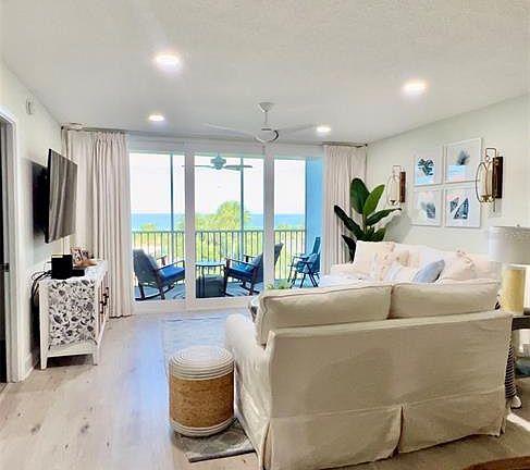 "Just Dune Our Thing" Available December 1,2025. If you are looking for the perfect beach getaway on Siesta Key, look no further! This stunning 2 bedroom,2 bathroom oceanfront condo is ready for you to make it your home away from home. * Impact windows and doors* This fully furnished unit has been tastefully decorated with a coastal design making it have the true Florida feel! As soon as you walk through the front door you will see the calming Ocean waters and the abundance of natural light and the luxury vinyl plank floors throughout making the condo feel open and spacious. The kitchen has quartz countertops, stainless steel appliances and a custom coffee maker. Wake up to a view of the ocean in the master bedroom with ensuite. After taking in the view, enjoy your morning cup of coffee on the lanai while feeling the ocean breeze. Ready for a day at the beach? Head down to the units personal cabana for your beach chairs, beach buggy, beach umbrella and a mini fridge! No need to "Schlep" your beach items to the condo leave them in the Cabana. After the day on the day on the sand and ocean cool off in the sparkling heated community pool! Located on the World-famous Siesta Key Beach/Turtle Beach! This is known to be the queit end of the island. want night life? Shopping? Grab the FREE trolley that stops right outside the building to take you to the Village. Do not miss out on this little slice of Florida paradise! Book your stay today.( Jan-April are 30 day minimum. June-December are two week Minimum) Special deal on a 3 month booking!