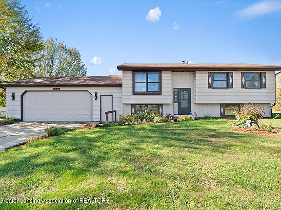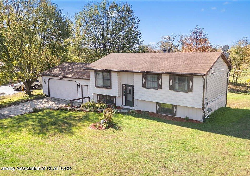 Welcome to your peaceful retreat in Laingsburg—perfectly situated in a private setting surrounded by nature and mature trees, yet just minutes from town, highway access, and everyday amenities. This 4-bedroom, 1.5-bath home offers comfortable living, modern updates, and plenty of space both inside and out. Step inside to find fresh paint, new flooring, and thoughtful upgrades throughout. The main floor features a convenient first-floor laundry and a spacious primary bedroom with its own en suite half bath. The open kitchen and dining area offers ample cabinet space and comes fully equipped with a dishwasher, stove, built-in microwave, and stainless steel refrigerator with icemaker—everything you need to move right in. Enjoy multiple living spaces, with bedrooms and living rooms on both levels, offering flexibility for guests, home office space, or family activities. The walkout lower level leads to a patio and a large backyard, perfect for outdoor entertaining and soaking in the surrounding nature. Outside, relax on the expansive freshly painted deck overlooking the beautiful property. The oversized attached 2-car garage with door opener provides plenty of storage and convenience. An accessible ramp leads into the home for easy entry. Additional features include: Updated well tank and water softener New outlets throughout the home Recently insulated attic for efficiency Spacious landscaped yard with mature trees 1-Year Home Warranty provided by the seller for peace of mind This move-in ready home combines privacy, comfort, and convenience—an ideal place to call home. Don't miss your chance to experience Laingsburg living at its finest!