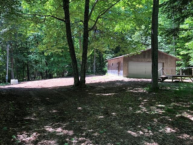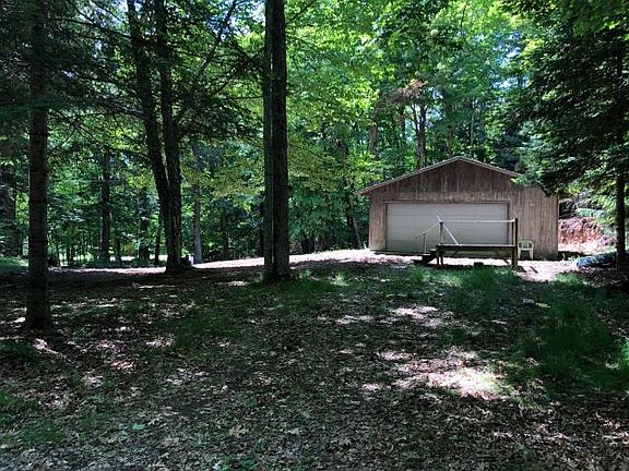 The perfect get away located in a wonderful wooded area with large mixed forest. Just a short walk from the sandy beach access on Plum Lake. Included is a large 2 car garage for storing your toys. Well and septic for future building.