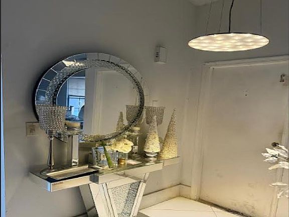 The home boasts 32x32 Alaska White polished porcelain flooring throughout, providing a clean, cohesive, and elegant look. Additional highlights include two extended living rooms, perfect for entertaining and relaxation, 2 convenient car garage. FYI: The home features a new roof installed in 2018. Both living rooms have been upgraded with polished porcelain flooring, glass tile accents, and LED light chandeliers, creating a clean, modern, and futuristic style—consistent with the fully renovated bathrooms as well.