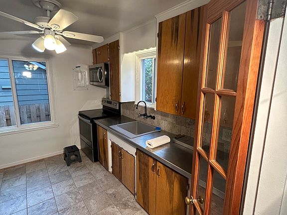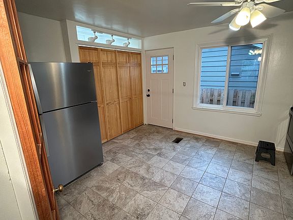 Completely upgraded January 2025. This two bedroom one bath home has additional living space / storage in an upstairs addition. New kitchen and bathroom flooring, stainless steel countertops, stove, refrigerator, washer, dryer, hot water tank and bathroom fixtures. New paint throughout. New gas fireplace and new high efficiency gas furnace. There is a detached garage with finished inside, alley access and parking. Fully fenced yard includes a new steel deck off the master bedroom. This home is one block off Highland Park with tennis courts, playgrounds, and baseball fields. No pets, no smoking, no exceptions. The term of the lease is one year and month to month after that. First month, last month and $750 deposit is due at the lease signing. No pets, no smoking. Renter is responsible for all utilities and yard maintenance.
