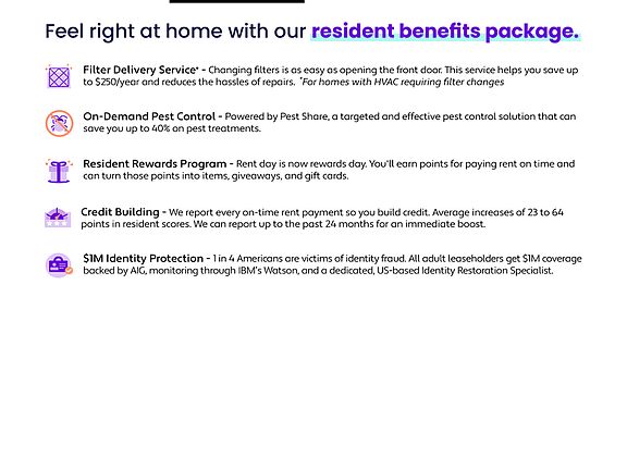 we provide a Resident Benefits Package (RBP) to address common headaches for our residents. Our