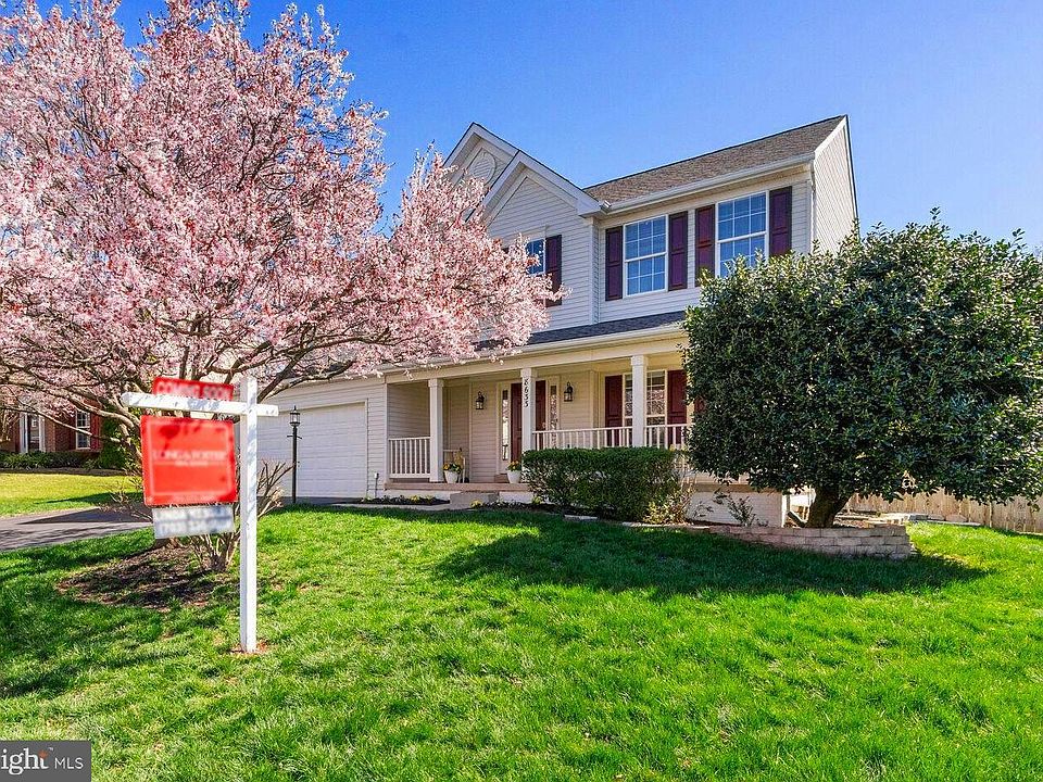 Sellers need rent back until 6/15. Charming colonial with a welcoming, country front porch. This gem features 9 ft ceilings, luxurious molding, and a freshly, fully painted interior. Step onto gleaming newly finished hardwood floors in the foyer, hall, powder room, dining room, and living room, and kitchen, creating an inviting ambiance . The cook's kitchen, remodeled in 2023, showcases a gourmet design with a cooktop island, recessed and pendant lighting, double wall ovens, and all-new black and stainless steel appliances complemented by pristine white cabinets, breakfast nook, and SGD to backyard spacious deck. Open to the kitchen, the family room welcomes you with neutral, new carpeting, enhanced by recessed lighting, and a cozy gas fireplace. Upper level has freshly finished hardwood floors in hallway, Primary and 4th bedrooms and recent carpet in bedrooms 2 and 3. The Primary bedroom is generous size, vaulted ceiling with a double entrance walk-in closet and a bath that offers a separate shower and soaking tub with double sink vanities; there are 3 more spacious bedrooms. Main hall bath has tub/shower. The fully finished basement, complete with a newly remodeled, full bathroom, has a 'walk out and up' to a fully privacy fenced backyard, providing plenty of space for outdoor fun. House has a 2018 architectural shingle roof and a 2015 gas HVAC system; newly power washed siding; a 2 car garage with door openers. Set in the sought-after Sheffield Manor sidewalk community, residents enjoy a wealth of amenities, including a clubhouse, Olympic-size pool, basketball and tennis courts, pickleball facilities, scenic walking trails, and a 2-acre fishing pond. Welcome home to a perfect blend of style, comfort, and community living!