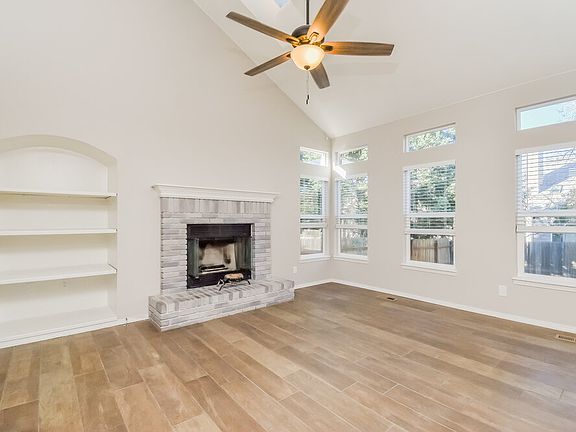 Meet your new rental home in Colorado Springs, CO! This home has four bedrooms, three and a half baths, and a two-car attached garage. The living room is beautiful. It features high ceilings, a wall of windows for great natural light, and a lighted ceiling fan. You'll love the gorgeous fireplace, too. In the kitchen, you'll find pristine white cabinetry and a subway tile backsplash. There's plenty of storage space, including a kitchen island. The bedrooms are upstairs. When you are ready to relax, the main bedroom oasis is waiting. You'll enjoy a lighted ceiling fan and a great walk-in closet. Your pets will love the fenced backyard. Tour today!