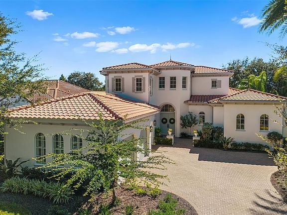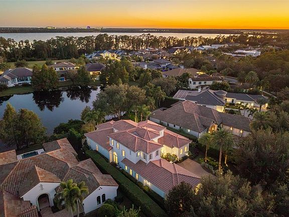 Built in 2012 by renowned ISSA Homes, this exquisite residence has been meticulously maintained and thoughtfully updated throughout. Set on one-third of an acre overlooking a tranquil pond, the home spans nearly 5,100 square feet and features five en-suite bedrooms, a powder bath, a dedicated office, an upstairs loft, and a three-car garage. The outdoor living is truly exceptional, recently reimagined with new Travertine pavers, updated pool tile and interior finish, lush tropical landscaping, and a freshly painted exterior. Enjoy a private pool and spa, expansive sun deck, and a covered lanai complete with summer kitchen and remote-controlled shade screens—perfect for both relaxing and entertaining. Inside, new double front doors open to a home filled with natural light, soaring ceilings, and travertine floors with intricate wood inlays. The main level offers elegant living and entertaining spaces, including a formal living room with a gas fireplace and coffered ceiling accented by designer wallpaper, a bright dining room with a statement chandelier, a cozy family room overlooking the lush landscaping and pond, a private office with custom built-ins, and a gourmet kitchen showcasing light blue cabinetry, new stone countertops, a butcher block island, and designer lighting throughout. On the first floor, the primary suite is a serene retreat featuring a breakfast bar, three closets, and a luxurious bath with a walk-through shower, dual vanities, and a garden tub. A secondary bedroom suite, powder bath, and utility room complete the main level. Upstairs, a spacious loft anchors three additional bedroom suites, each with its own fully renovated bath, providing comfort and privacy for family or guests. Nestled within the gated Lake Nona Golf & Country Club, residents enjoy 24-hour security, A-rated schools, and close proximity to Orlando International Airport, Medical City, Boxi Park, fine dining, shopping, and major expressways (417 Greenway and 528 Beachline) for convenient access throughout Central Florida. This move-in-ready home perfectly blends timeless craftsmanship, elegant updates, and the very best in Country Club living.
