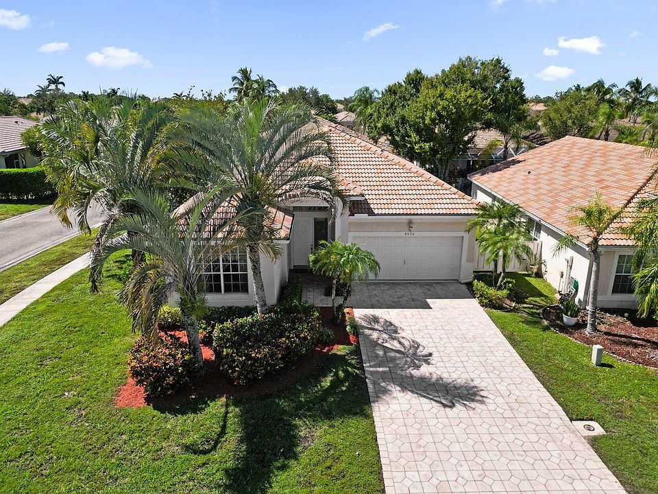 Easy living in this 2 bedroom, plus den, single family home in the beautiful community of Andros Isle. With a freshly painted interior, this home features custom lighting, updated marble tile flooring in main living areas and is move in ready. The kitchen has bountiful counter space for preparing gourmet meals and a built in wine cooler for those that enjoy wine and features Quartz countertops and stainless steel appliances that provide easy care and maintenance. The primary bath has been updated and includes a soaking tub and separate shower. Situated on a corner lot in the desirable community of Andros Isle, the low monthly dues provide amenities including 24/7 guard gate, clubhouse, lawn care, WiFi, CaTV, monitored security, pool, tennis, gym, basketball, play area and so much more.