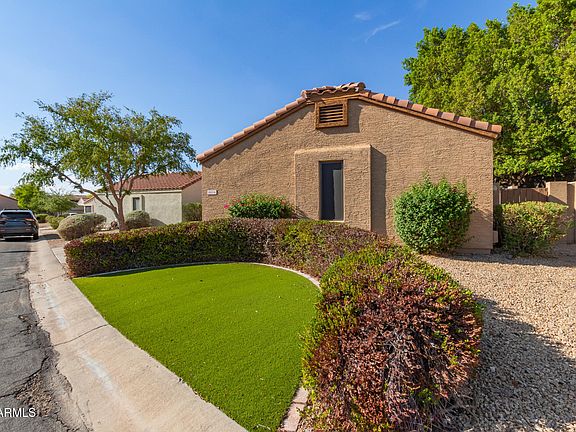 Welcome to this beautiful home in the gated lake Community of Desert Harbor! Offering 3 beds, 2 baths, manicured landscape, & a 2-car garage w/cabinets. The inviting interior features vaulted ceilings, neutral paint, tons of natural light, and tile flooring w/wood-look in bedrooms. Great floor plan with a combined living/dining room & an open-concept family room. The impressive kitchen boasts built-in appliances, granite counters, track lighting, ample white cabinetry, and a peninsula w/breakfast bar. The double-door main bedroom has an ensuite with dual granite sinks, separate tub/shower, & a walk-in closet. Check out the private backyard with a covered patio & artificial turf, where you can relax or enjoy BBQ! Fantastic Community amenities, plus excellent Peoria location! Make it yours!