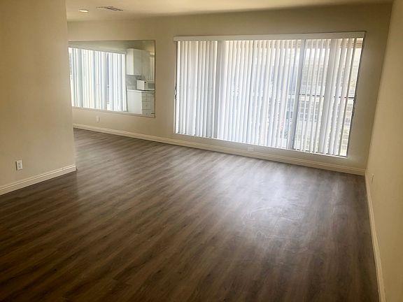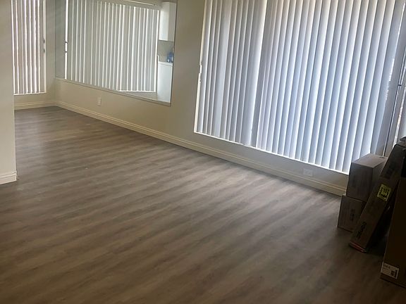 Remodeled, Upper 2 Bedroom, 2 Bathroom Recently Remodeled! Unit includes new bathroom and kitchen with plank flooring throughout. The large kitchen features a new refrigerator, new dishwasher plus new top of the line gas stove and microwave. Bathrooms are fully remodeled which include new vanities, lighting, separate shower and tub, all new white quartz counters, it is gorgeous! This spacious apartment has a private west facing balcony and all new blinds throughout? The private patio with its view of trees and palms is perfect for a little escape while working from home. The unit has central Heat and AC which is pleasant for all seasons! The building has a secure front gate with intercom and includes one carport assigned spot. Laundry facility is in underground gated area!