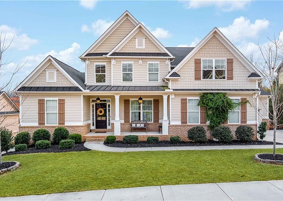 With Rising Inflation control your cost of living in this energy efficient home with solar panels AND Seller paid Interest buy down Welcome to your dazzling new haven! Step into this beautiful home in the highly sought after River Rock Subdivision – a breathtaking Master-on-Main layout. Walk into the grand 2-story foyer adjacent to the formal dinning room. As you glide across hardwood floors in the open concept family room, kitchen, and cozy keeping room, you will be greeted by the gourmet kitchen showcasing pristine white cabinetry, quartz countertops, a sleek gas cooktop, and double ovens. Find yourself enjoying the oversized walk-in pantry and laundry room. Revel in the keeping room’s allure with its own stacked stone gas log fireplace. The family room, crowned with a coffered ceiling, boasts yet another striking fireplace. Ascend upstairs to uncover 3 luxurious bedrooms, 2 full bathrooms, and a flex space with endless possibilities. Step out onto a covered patio, commanding views of the sprawling flat backyard, fully fenced in and a full daylight basement. There is no shortage of parking. This home features a 2-car side entry garage and a 3rd car carriage garage. Situated in the highly desirable River Rock community of Forsyth County, this home is part of a community known for its excellent schools, thriving local amenities. Far enough away to feel like you are in your own oasis but close enough to have the convenience of parks, shopping, and dining. Whether you seek tranquility or entertainment, this location offers the best of both worlds. Don't miss the opportunity to make this your new haven—schedule your appointment today and envision the lifestyle that awaits you!