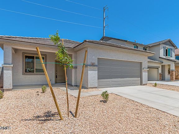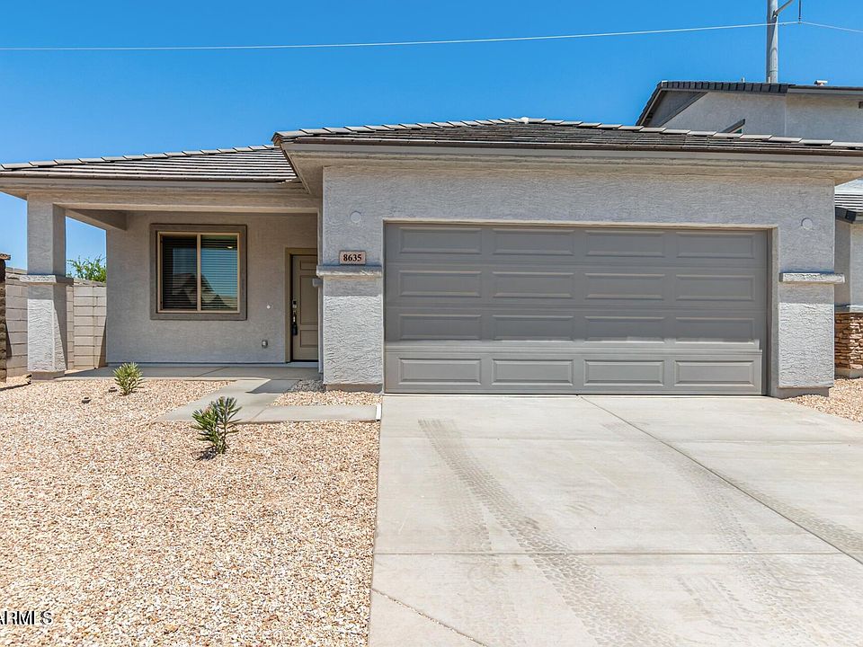 Newer home sitting on a desired corner lot, ready to go! The light & bright interior has an inviting living room, tile flooring throughout the house, a neutral palette that allows you to add your own taste, and 3 sizable bedrooms. Immaculate kitchen comes with stainless steel appliances, a center island w/breakfast bar, popular white cabinets, granite counters, and a pantry. In the primary suite, you'll discover a beautiful bathroom with double sinks and a walk-in closet. Private & serene backyard offers a low-care landscape and a relaxing covered patio. Can't miss out on this excellent opportunity!
