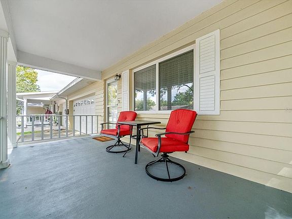 Spacious Montgomery Model Villa located in On Top of the World, 55+ gated golf community in SW Ocala FL. This is a 2 bedroom, 2 bath, 2-car garage villa located on a tree-lined street with Green Space across the street! ROOF 2017, HVAC 2021, ENERGY WINDOWS 2020! Nice long wide driveway leads to inviting front porch with Green Space views – perfect to enjoy your morning coffee, or evening beverage to meet/greet your neighbors! Step inside into the living room – notice the beautiful laminate flooring. The bedrooms are on the right side of the home, with the guest bedroom in front with spacious closet. The guest/hall bath divides the bedrooms. The primary bedroom is in the back for privacy with large walk-in closet and en suite bath with step-in shower w/custom tile. The kitchen has been nicely updated with new counters, appliances, and more! The family room is adjacent to the kitchen and provides table space and lounging space > perfect for entertaining! Step out into the finished Florida room! The 2-car garage is off the kitchen and the laundry is located there. Exterior of home was freshly painted late 2024. The monthly HOA fee includes Basic Spectrum Cable, irrigation water, roof repair, exterior painting every seven years, exterior maintenance and insurance, landscaping, trash & recycling, 24/7 monitored gates and what seems like endless amenities; three pools (2 outside & 1 inside & another under construction), two state of the art fitness centers, pickleball (uncovered & covered), billiards, archery range, corn hole, bocce ball, tennis, shuffleboard, horse shoes, remote control flying field and race cars, 175+ clubs, woodworking shop (extra fee), library, and much, much more! A golf cart community with access to several shopping centers. Centrally located 20 minutes from the World Equestrian Center, easy drive to 4 cruise ports and/or airports, and within a close proximity to entertainment complexes in Orlando. FURNITURE AVAILABLE OUTSIDE PURCHASE OF THE HOME - COULD BE TURN-KEY OPPORTUNITY!