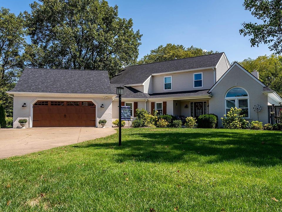 UPDATES UPDATES UPDATES!!! This farmhouse style 5 bed 2.5 bath North side home is one you won't want to miss! Just check out all these updates: New roof 2020. New furnace and HVAC 2022. Granite countertops, granite single basin sink, new touchless kitchen faucet and backsplash 2022. Luxury vinyl flooring downstairs 2022. New carpet upstairs 2022. New yard barn 2022. Interior and exterior of home repainted 2019. New garage door. New front door. All new windows 2021. New tankless water heater 2022. Resurfaced and added rock and shiplap to fireplace. Wooden mantle is from one of the original beams in a small boutique store called Flutter in Newburgh. This store was one of the original buildings in Newburgh. The 200 year old wooden beam that survived the fire was removed and cut to custom fit the mantle. New flooring in laundry room, shiplap and shelving added. New flooring in half bathroom downstairs. Custom wooden shutters built to match new front door and garage door. New outdoor lighting and front yard lamp. All new ceiling fans upstairs. Wow so many incredible updates!! Now moving outside of the home there is a covered patio area with a fenced in backyard overlooking a gorgeous and serene pond setting. There is a yard barn on the other side of the pond with small patio area for storage or additional enjoyment of nature. Throw in a separately fenced inground pool area to stay cool in the summer and this home is one that will truly check all the boxes!!