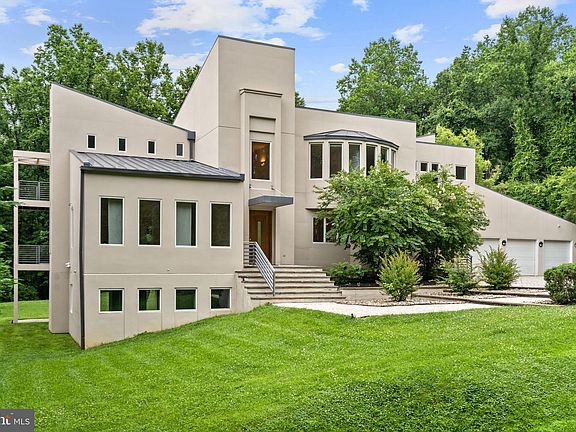 Price improvement! Impressive gates and a private driveway lead to a gentle knoll on which this this modern masterpiece is positioned. The lush, 2.55 acre site envelopes this estate residence which reflects timeless, modern architecture and a long list of luxurious amenities. A custom entry door leads to a grand entry hall finished in black granite and hardwood with soaring ceilings and dramatic windows providing abundant light. A fireplace centers the living room which is separated from a gracious dining room by an impressive, two-story gallery. Nearby, a fully renovated kitchen is flooded with natural light from a wall of southern windows, and the adjoining family room centers on a second fireplace with expansive views from the curve-linear wall of glass overlooking the gardens. A full bedroom and bath as well as a laundry room complete this level. Ascending the dramatic main staircase, one is reminded of the timeless appeal of Modern Architecture with its soaring clear-story ceiling and special lighting. On this level, the Primary Suite is a destination in itself with dual walk-in closets, a private terrace, and a renovated spa bath complete with a its own sauna. A discrete staircase ascends to a secret loft and access to a rooftop terrace with sweeping views. Elsewhere, three generous bedrooms with fully renovated, en-suite baths provide ample accommodations. A comfortable sitting room on this level affords the perfect destination for a home office or for homework! The lower level is also flooded with light and provides yet more luxurious surprises to encourage you never to leave home. A chic recreation room adjoins a full wet bar equipped with professional club lighting and a built-in banquette to host memorable events well into the evening. A nearby full wine cellar provides amble beverage storage, and a media room is fully equipped for movie night! Elsewhere on this level, a spa with both steam and sauna adjoins an exercise room and an indoor swimming pool with an outdoor terrace. Located just 10 minutes to McLean and Tysons Corner and 20 minutes to downtown Washington, this fully updated estate residence affords a turn-key destination with luxurious amenities rarely available at this price point.