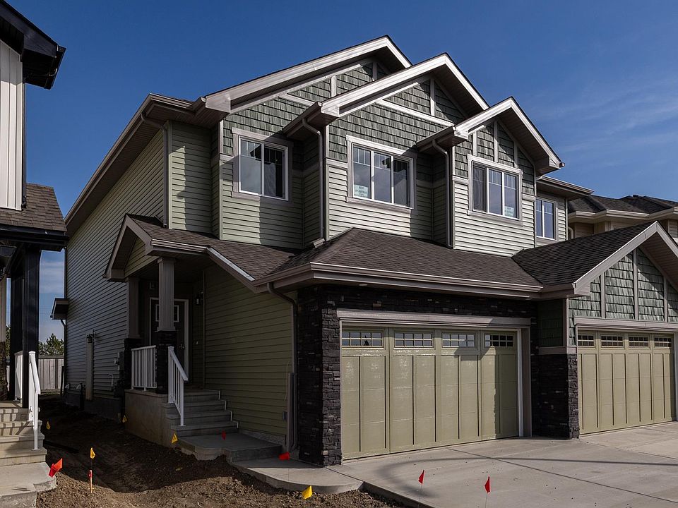 QUICK POSSESSION!! Juniper Heights is an expansive new community in Morinville. You'll enjoy a close proximity to schools, parks, pathways, new regional rec centre and more in this beautiful community! With over 1538 SQFT of open concept living space, the Soho-D from Akash Homes is built with your growing family in mind. This duplex home features 3 bedrooms, 2.5 bathrooms and chrome faucets throughout. Enjoy extra living space on the main floor with the laundry room and full sink on the second floor. The 9-foot ceilings on main floor and quartz countertops throughout blends style and functionality for your family to build endless memories. PLUS a SEPARATE ENTRANCE, $5000 BRICK APPLIANCE CREDIT TO THE BRICK, AND single oversized attached garage! HOME IS COMPLETE!