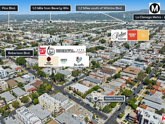 Built in 1963, 8638 Cashio features (6) 2-bdrm. units & (2) 2-bdrm. units, and (2) 1-bdrm. units. These bright and spacious units average approx. 1,000 SF. Please note, the units facing Cashio St. are equipped with balconies. Renovated units include quartz countertops, wood-laminate flooring, stainless-steel appliances, and more. 8638 Cashio is a value-add opportunity offering approx. 45% rental upside. The property will stabilize at a 7.96% CAP and 9.38 GRM at projected market rents. Please note, Unit 7 was rented in July 2024 for $3,125. 8638 Cashio is adjacent to Beverly Hills and Carthay Square, 2 exclusive neighborhoods under constant demand by high-income young professionals and families. The property is 1.1 miles from Wilshire Blvd, providing convenient access to the METRO Purple Line La Cienega Station (expected completion in 2025), and a wealth of financial, entertainment, healthcare, and law employers along Wilshire Blvd and the greater Beverly Hills area. In addition, 8638 Cashio is near the Beverly Hills Tennis Club and La Cienega Park & Recreation Center.